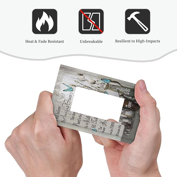 Blue Butterfly Rustic Flower Inspirational Quotes 1 Gang Rocker Light Switch Covers Single Decora Outlet Wall Plate Decorative Switchplate Faceplate GFCI for Farmhouse Country Bedroom Kitchen Decor
