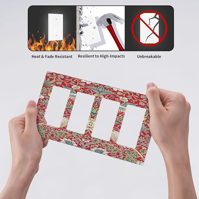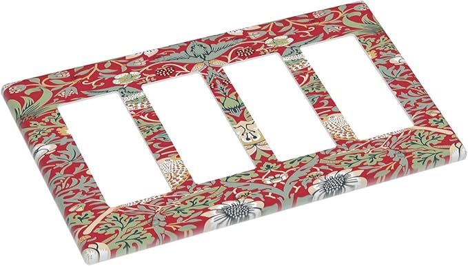 William Morris Strawberry Thief Botanical Red Green 4 Gang Rocker Decora Light Switch Cover Outlet Covers Wall Plate Decorative Switchplate Electrical Faceplate GFCI for Country Bedroom Decor