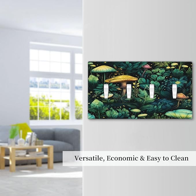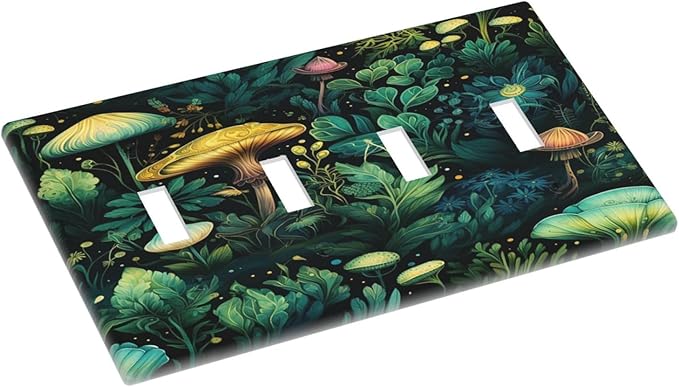 Green Dark Forest Mystical Mushroom Quad Toggle Light Switch Covers 4 Gang Wall Plate Decorative Switchplate Electrical Faceplate for Country Bathroom Bedroom Kitchen Decor