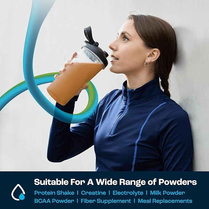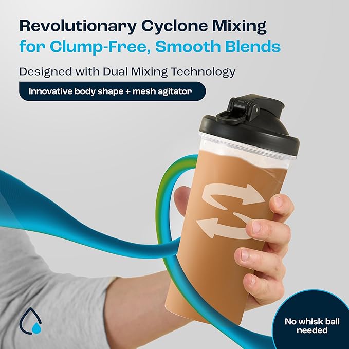 - Revolutionary Dual Mixing Technology - The Aquafit Protein Shaker Bottle's innovative shape, paired with a mesh agitator, creates a cyclone effect for smoother blends. No need for whisks and shaker balls—we designed this protein shake bottle to prevent clumps in protein shakes, smoothies, pre-workout mixes, and powder supplements.