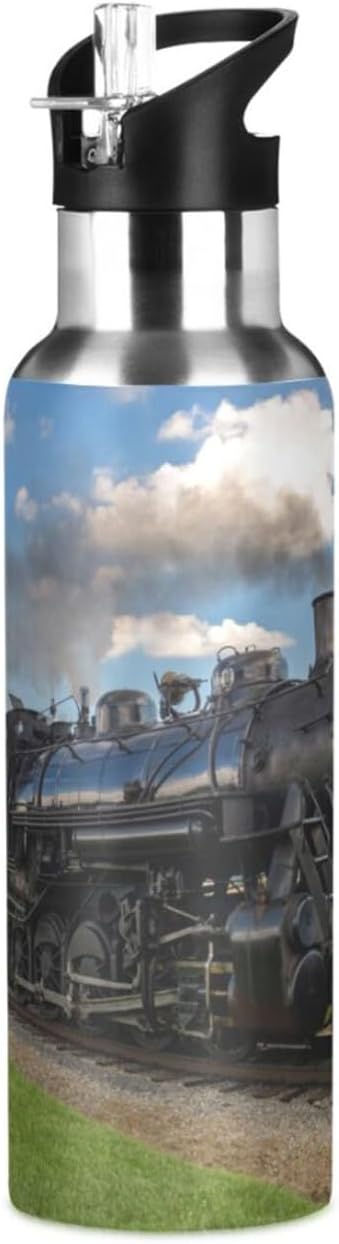 Vintage Steam Train Stainless Steel Water Bottle with Straw Lid - 20 Oz Sports Insulated Water Bottle Thermos for Sport Gym Outdoor Travel School (B-000)