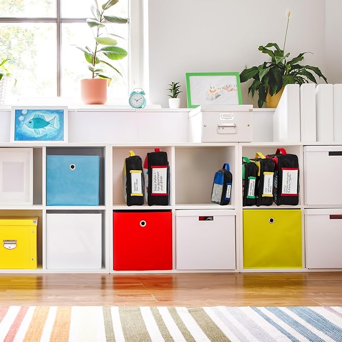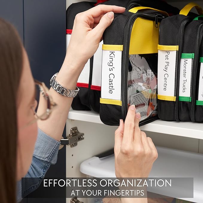 - Each storage bag, ideal for building blocks and more, features a mesh side pocket for instruction manuals, a name tag pocket, and practical handles for easy carrying. Constructed from PVC and fabric, these bags are sturdy and durable.