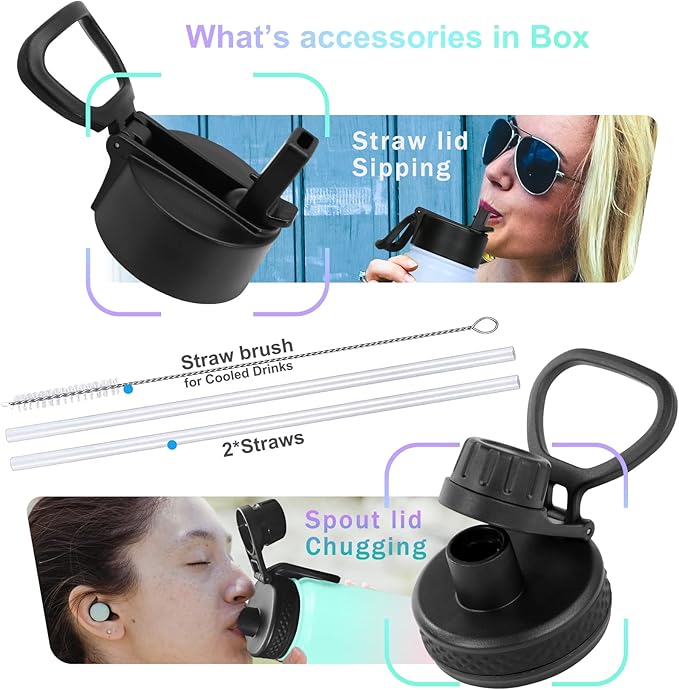 - 5. Perfect Choice -Reusable Sports water bottle:Great for go-to workouts, daily use,work, school, home, hiking, biking, boating,the gym and so on. Travel Friendly, Comes with a variety of vibrant colors, ideal for men, women, boys, girls, your friends, family, beloved ones【What you get:】 1 x 32oz water bottle, 1 x Straw lid, 1 x Spout lid, 2 x straws, 1 x straw brush, 1 x packing box.