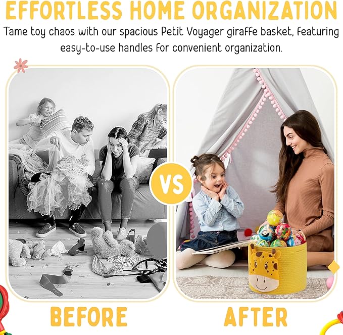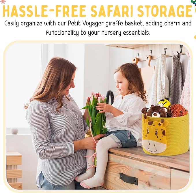 - ENJOY A HASSLE-FREE NURSERY - Transform your nursery into a clutter-free, charming safari adventure with our Petit Voyager giraffe rope baskets for storage. Perfectly sized for all your baby's essentials, it enhances decor while making room organization effortless and enjoyable.
