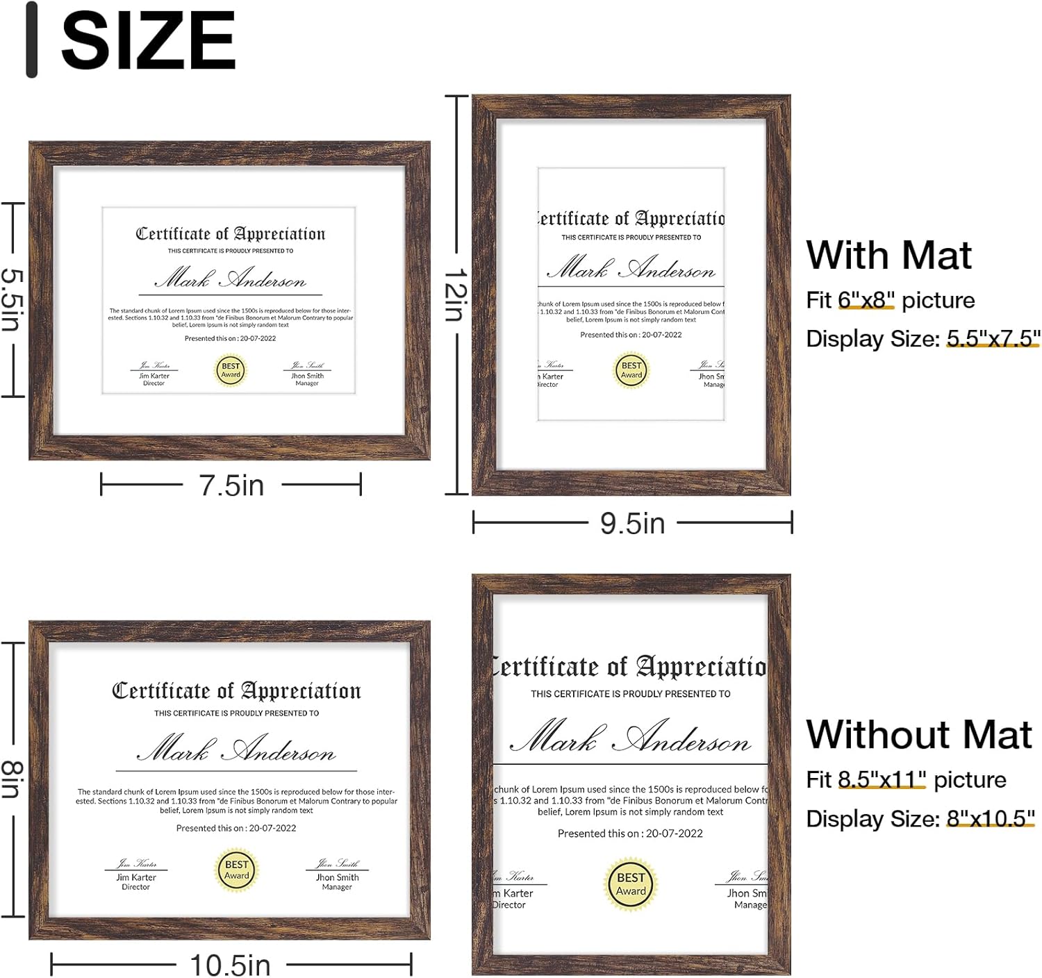 - Premium Materials: Made of sturdy composite wood material, our 8.5x11 frames are lightweight and built to last. With a high-definition plexiglass front that resists breaking, simply remove the protective film before use to reveal crystal-clear clarity