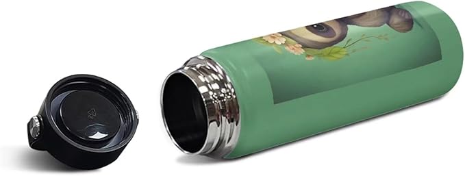 ZOUTAIRONG Sloth Insulated Water Bottle with Handle Stainless Steel Sports Water Flask Cup Portable Handle Lid Hot and Cold Water Bottle 18 oz Cute Animal Flower Travel Canteen Mug Green