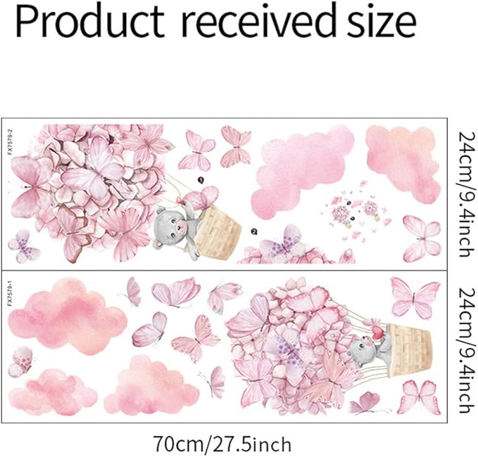 - DESIGN: The pink balloon sticker nursery wall featured with cute bear,pink flower,cloud,butterflies.Add a fun touch to children’s room walls.