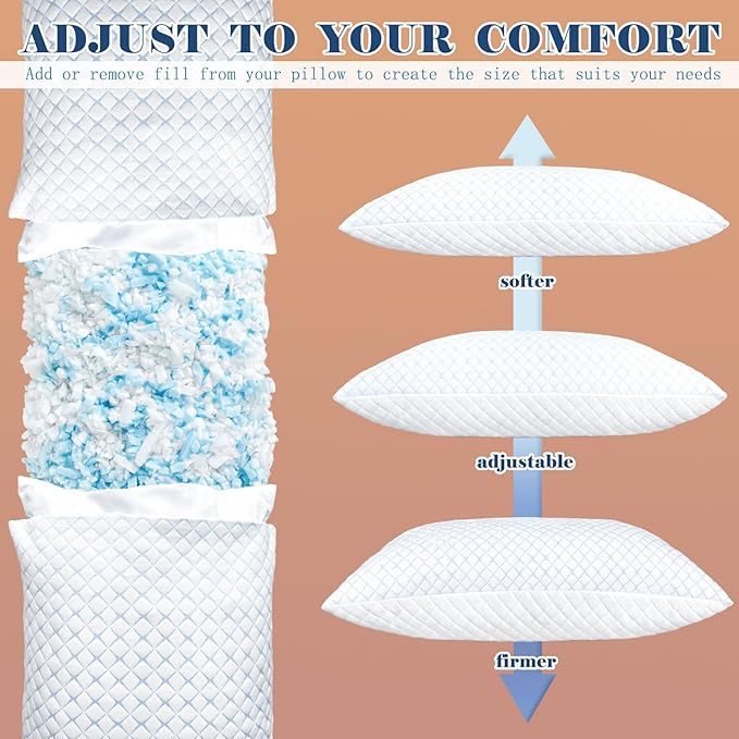 - Fluffy and Adjustable Height: The mislili gel pillow can be freely adjusted by itself, providing personalized support for your head, neck and shoulders, relieving pain and improving your sleep. There is a zipper on one side of the bed pillow. You can open it and insert or remove the filling through it