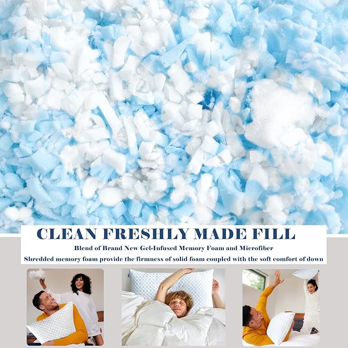 - Never Flat: When you open the package, please pat them well to regain their shape and wait 24 hours before using the pillow to sleep. High quality memory foam shred filling has good resilience and our cooling memory foam pillow will never go flat. You can also put them in the dryer and they'll get fluffy over time