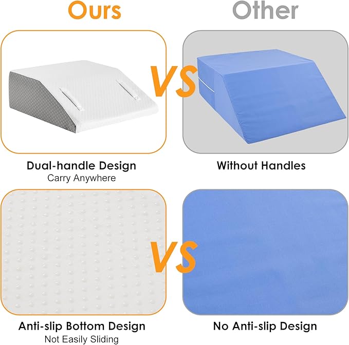 - Smart and Convenient Design: The inclusion of dual handles on the front allows for easy repositioning, making it convenient for users to adjust the leg wedge pillow according to their preference. The non-slip design at the bottom ensures stability during use.