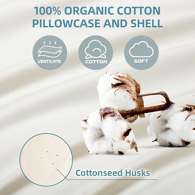 - AN EXTRA 100% ORGANIC COTTON PILLOWCASE: This buckwheat pillow features a soft, breathable organic cotton pillowcase that is unbleached and gentle on the skin. Removable and machine washable for easy cleaning.