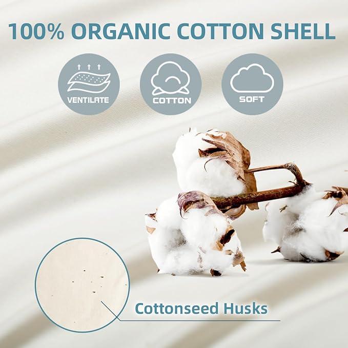 - 100% ORGANIC COTTON SHELL: The buckwheat pillow's shell is made of soft and breathable organic cotton, unbleached and friendly to your skin.