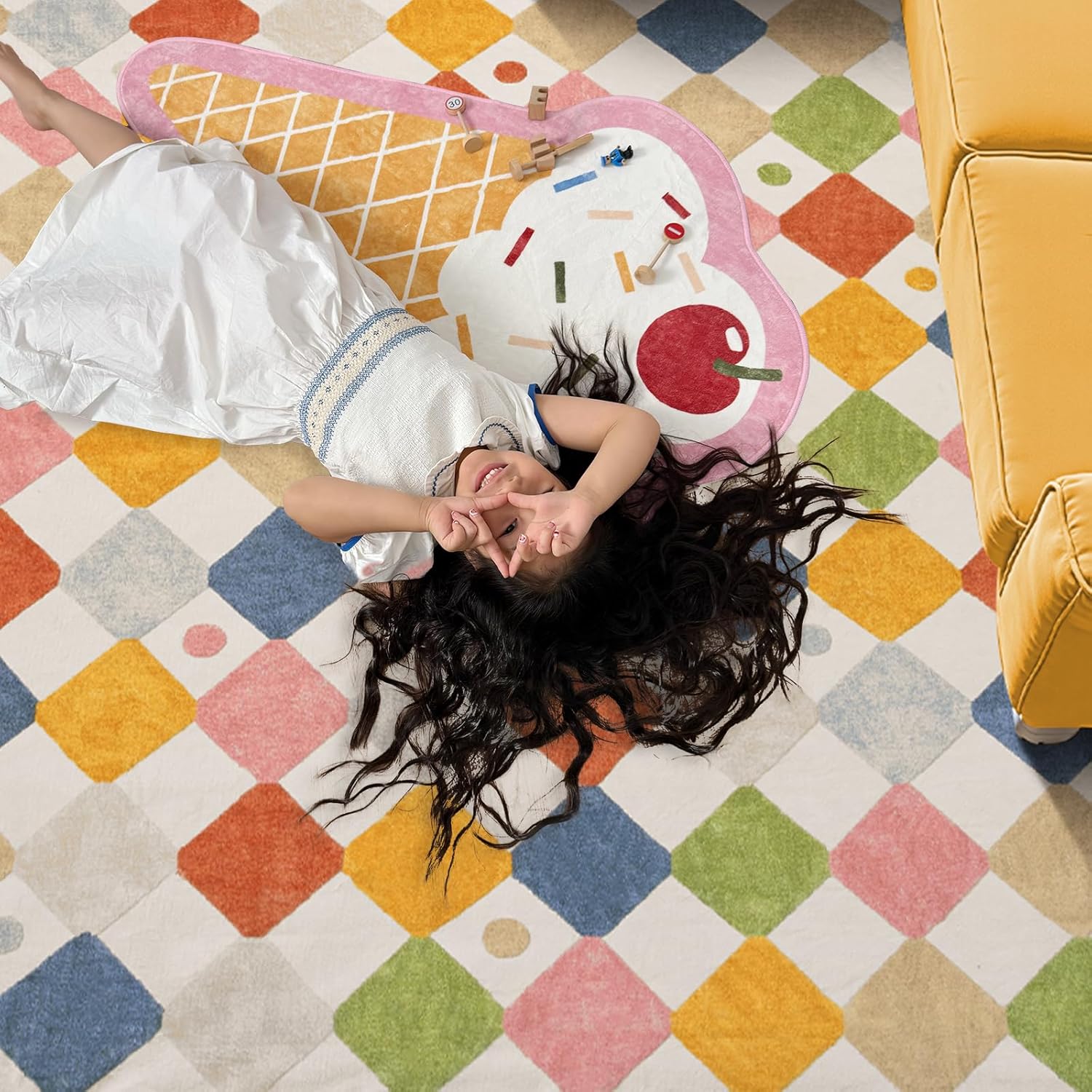 - Warm Vintage Colorful Design: Adorned with delightful diamond lattice splicing pattern against a soft cream bottom, this rug adds a playful charm to children's rooms and infuses vitality into adult spaces