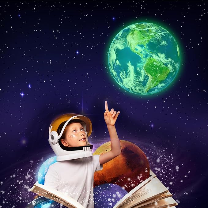 - Robmoda Glow in The Dark Planet - One piece of earth sticker made up of non-toxic, eco-friendly, waterproof, pressure resistant, shock resistant& durable fluorescent PVC. It comes in 23.5 cm (9.25β).
