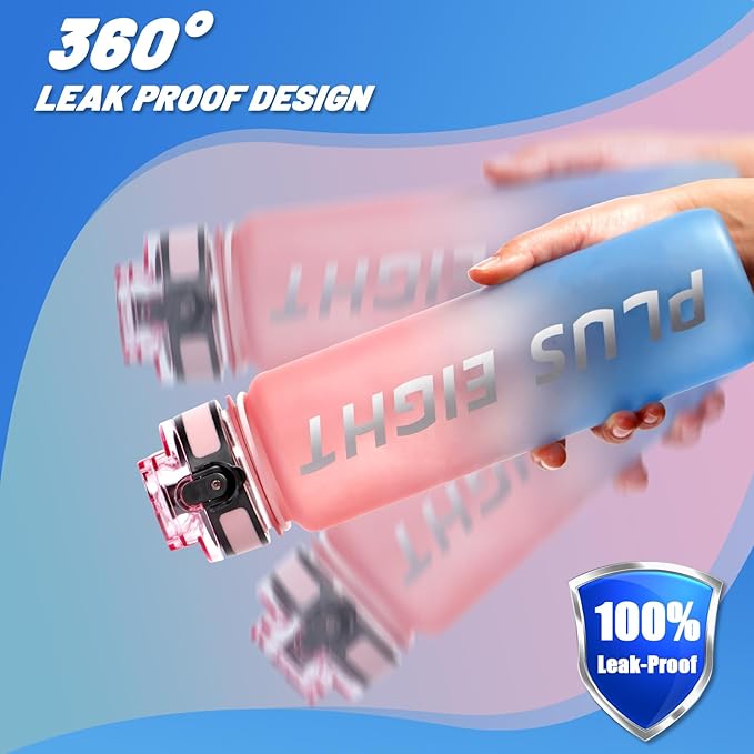 - 🏃🏻♀️💧【HIGH QUALITY UNIQUE DESIGN】 : Our water bottle with time marking wiht ergonomically shaped, equipped with a durable wrist strap. It is 360° leakproof, sturdy, high Quality , trian durable and impact-resistant, making it easy to carry around. When you finish our workout, its is easy to lock the bottle to make it 100% leak-proof and dust-proof.