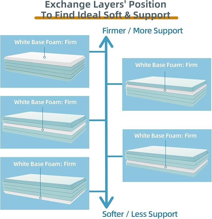 - WHY WE COMBINE TWO DIFFERENT FOAM - LET YOU ADJUST SOFTNESS TO ACHIEVE THE IDEAL SUPPORT: The 5 layers’ pillows of the memory foam pillow consist of 4 layers of memory foam and one layer of foam, supportive yet soft. Memory foam can slowly sink down according to the shape of your head, giving you the soft ‘cloud’ touch feeling while foam is harder than memory foam, providing better support for your neck. You can adjust the position of foam layer for different softness to achieve the ideal support you want.