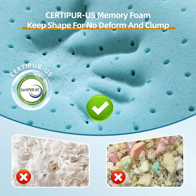 - CERTIPUR-US MEMORY FOAM KEEPS SHAPE FOR NO DEFORM AND CLUMP: Unlike pillows filled with alternative down or shredded memory foam, easy lose its shape, the adjustable pillow for neck pain relief made of CertiPUR-US memory foam can slowly bounce back to its original shape and keep its original shape for a long time use, not prone to deform and clump. What’s more, you just need to add or remove the flat pillow layer to your ideal height, which is very clean, simple and convenient. Say goodbye to mess adjustments!