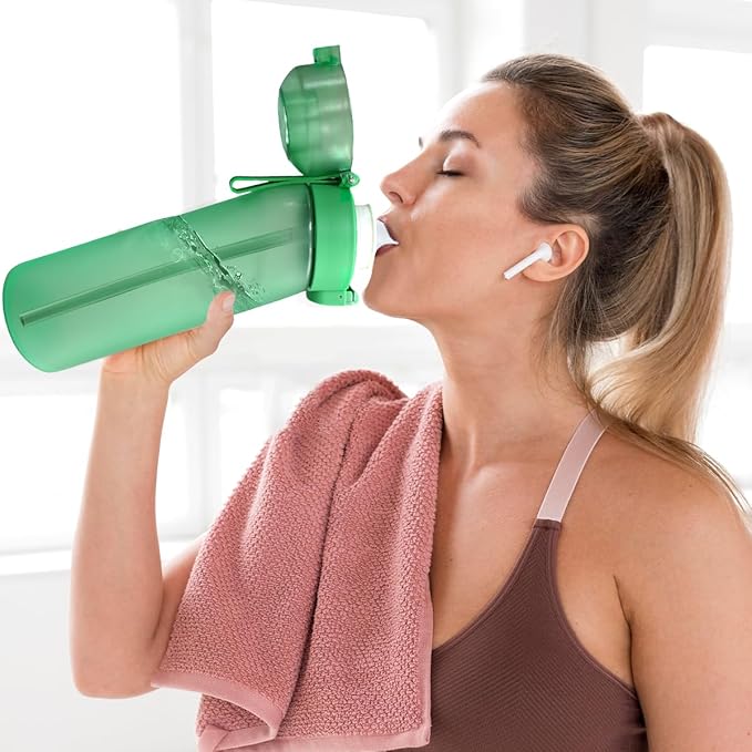 Water Bottle with Flavor Pods 21.9 Oz/650ml Fruit Fragrance Water Bottle Recyclable Sports Air Water Cup Scented Pods for Outdoor (Green)