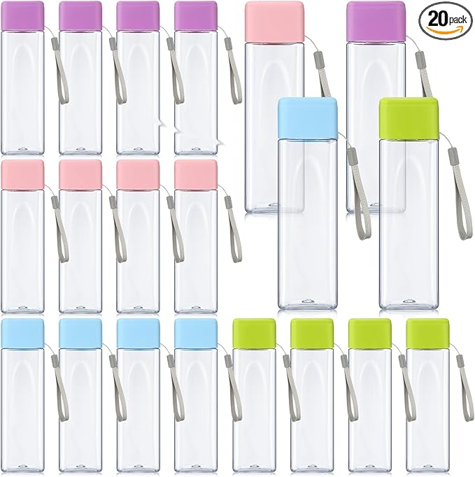 - Generous Supply in Vibrant Colors: experience the ample supply with this pack of 20 bulk plastic water bottles; Showcasing an array of vibrant colors, pink, blue, green, and purple, 5 of each color, these water bottles cater to people's preferences, and offer an exciting sense of color to your routine; Enough for daily use and ideal as gifts, these reusable sports water bottles are practical gifts for friends, family and colleagues