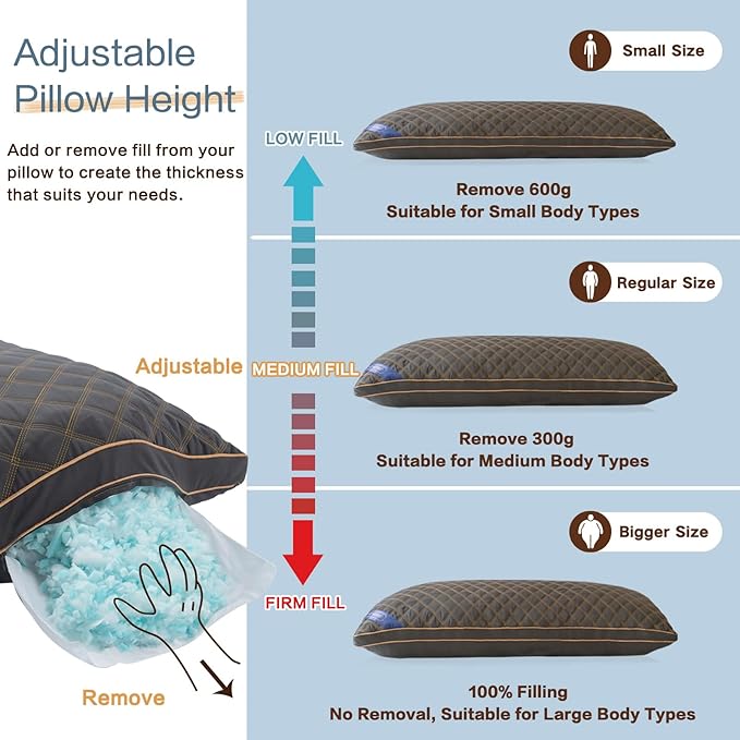 - ππππ ππ ππππππ- Adjust the amount of foam filling in our pillows to achieve your favorite level of support and comfort, helping to reduce pressure on muscles, sore spots and joints, all of our pillows provide proper spinal positioning for any sleeper. Allowing you to get deep rest and rejuvenation