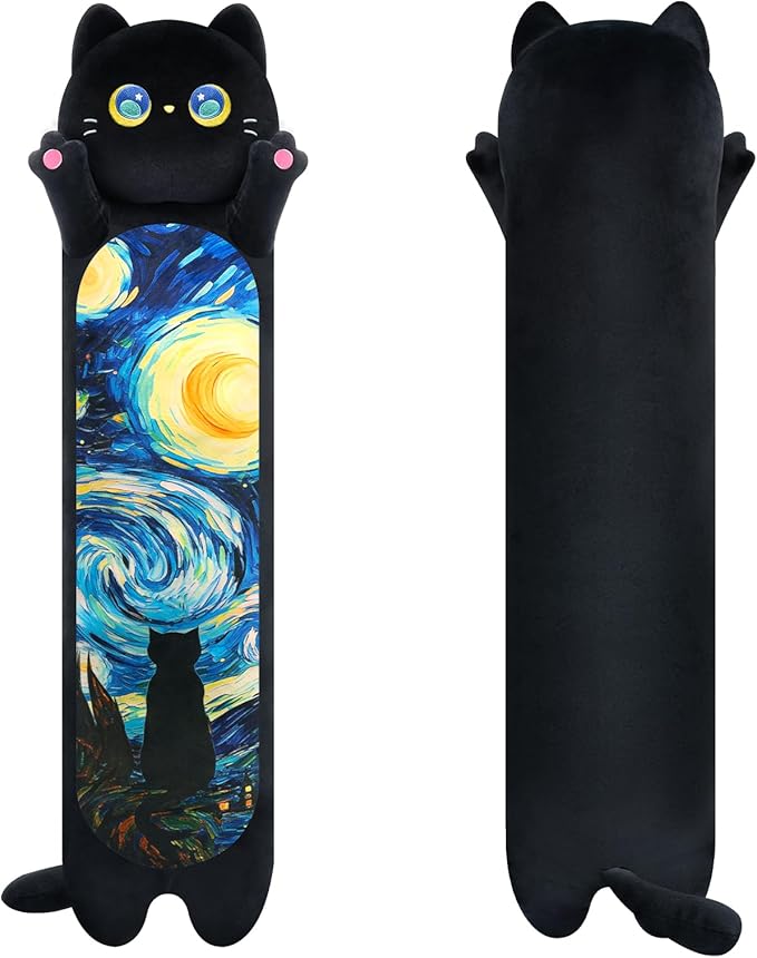 Long Cat Plush Kawaii Kids Plush Toy Pillows, Cute Black Cat Stuffed Animals Soft Plushies, Kitten Big Plush Toys Throw Body Pillow Doll Gift for Girls Boys (Black Starry Cat 44 Inch)