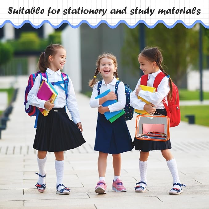 Sanwuta 3 Packs Toy Storage Bags with Zipper, Clear PVC Organizing Bags, Waterproof Toy Bags for Board Games, Building Blocks, Toys and Kids Books (Red, Yellow, Orange,10.24 x 7.09 x 2.36 Inch)