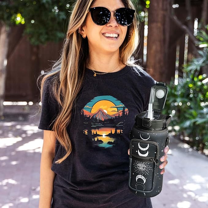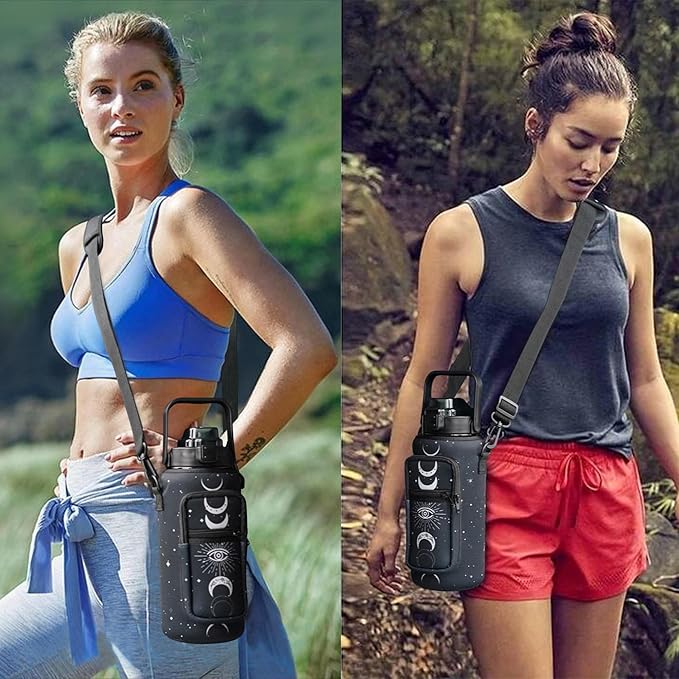 Goth Moon Half Gallon Water Bottle with Sleeve, 64 Oz Water Bottle with Measurements Marked, Leakproof-Free Drinking Water Bottle, Sports Water Bottle BPA Free Half Gallon Water Jugs