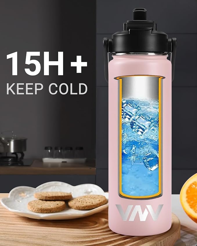VNV 24 Oz Insulated Water Bottle, Stainless Steel Vacuum Double Wall Insulated Thermos, Leak Proof Travel Mug with Straw Lid, for Home and Outdoor