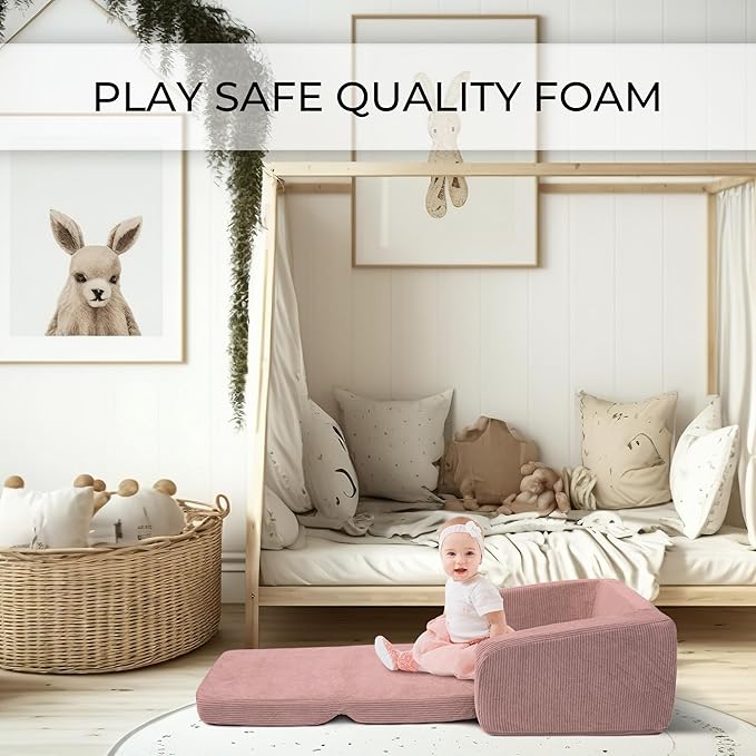 - Stylish 2-in-1 Convertible Feature: Your kids will simply love the kids sofa (recommended age: 18+ months)! Chic in stylish pink, the 22x16.5x15” kids couch delights with its double duty: easily switch from chair into a snug lounge position (22x41x11.5”)