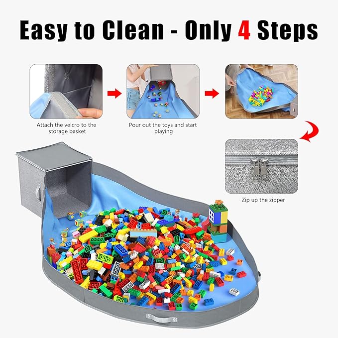 - Multi-Functional Toy Storage Organizer: This stackable toy storage basket doubles as an interactive play mat, providing an inviting space for children to spread out their building blocks and toys, then draw the corners together for quick and effortless clean-up. Our toy organizers and storage bins offer an efficient solution for managing play items
