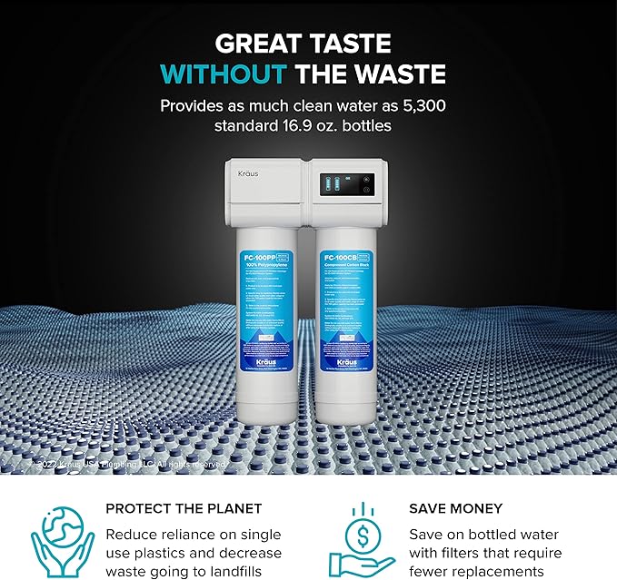 - UNDER-SINK DESIGN installs directly below your sink – INSTALLATION-READY with all mounting hardware, tubing, and batteries for fast and easy DIY set up – QUICK-CONNECT ADAPTERS make it easy to connect the filter system to your water supply lines