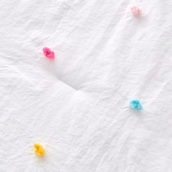 - 🎈BOHO BEDDING SETS - Super soft colorful pom pom toddler bedding set, solid white bedding set, designed with cute tufted pom pom, it is a sweet choice for a baby girl bedroom set, good to decorate a cozy, comfortable, and dreamy toddler bed.