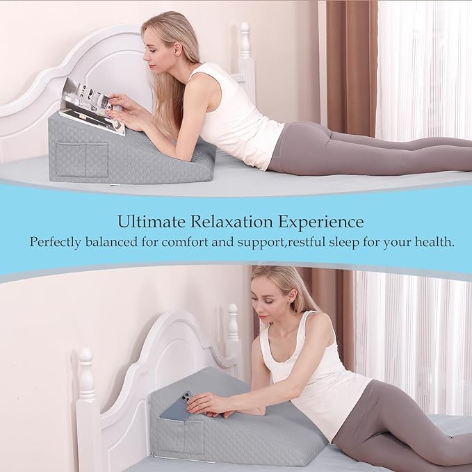 - 【BREATHABLE AND WASHABLE COVER】: The bed wedge pillow comes with breathable, removable and machine washable cover and certified by Oeko-Tex Standard 100. The cover is detachable and machine washable for easy maintenance and long-lasting use.