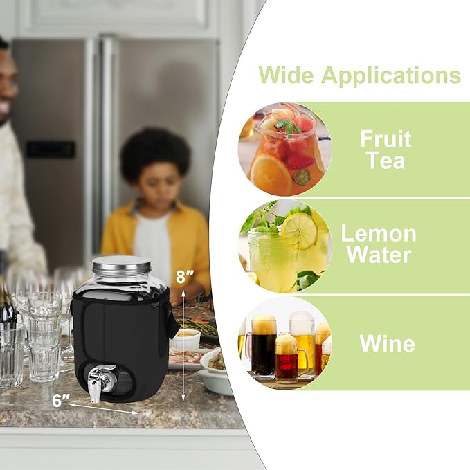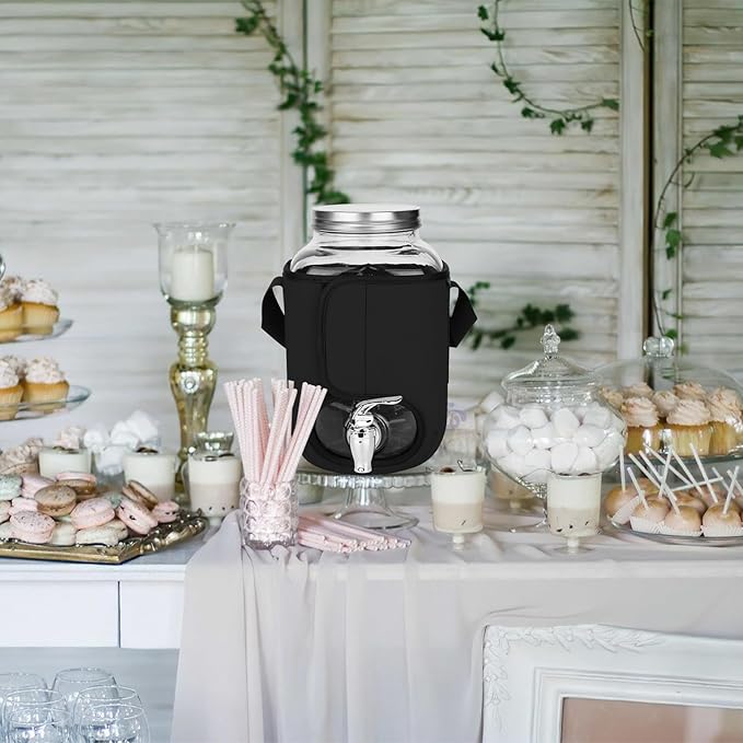 - 🎁Machine washable: This Beverage Dispenser Sleeve is made of premium quality neoprene and are built to last for years, each sleeve was hand-made carefully with reinforced stitching; premium quality fabric is a bit stretchable, easy to fit 1 Gallon Glass Drink Dispenser.