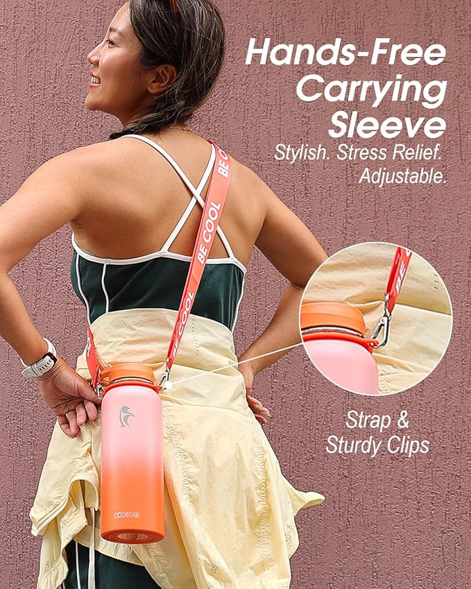 - Unleash Your Style, Hands-Free: Elevate your fashion game with this 40 oz water bottle's exquisite adjustable shoulder straps and eye-catching design. Whether worn crossbody, single-shoulder, or hand-held, it's a statement piece that complements your vibrant personality.