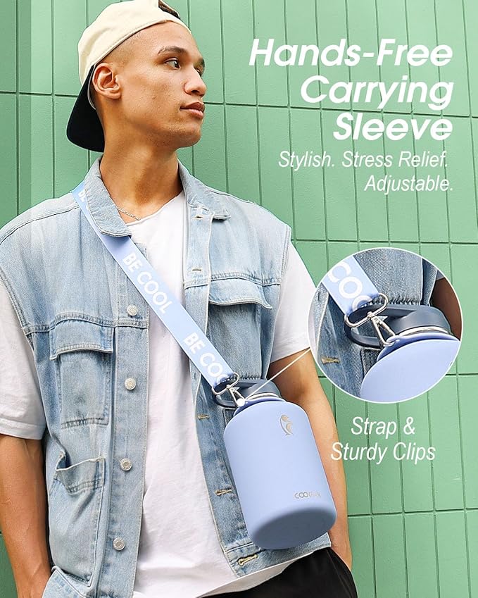 - Unleash Your Style, Hands-Free: Elevate your fashion game with this half gallon water bottle's exquisite adjustable shoulder straps and eye-catching design. Whether worn crossbody, single-shoulder, or hand-held, it's a statement piece that complements your vibrant personality.