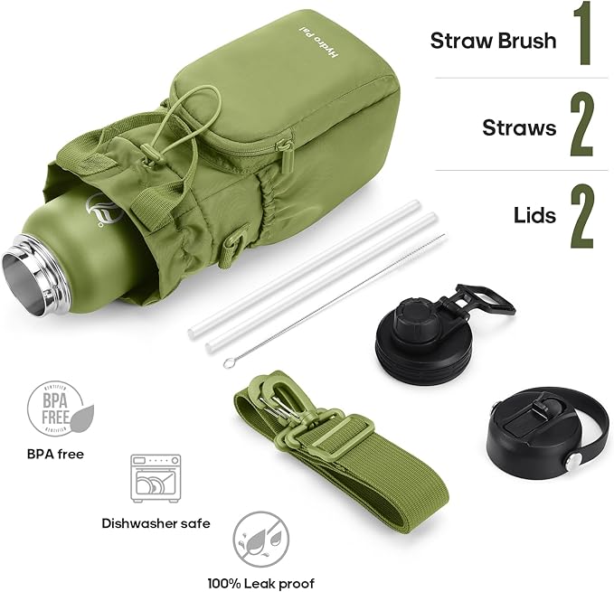 - COMPLETE ACCESSORY KIT: Includes a high-quality insulated water bottle, a waterproof holder with strap, straw lid, spout lid, two straws, & a straw brush