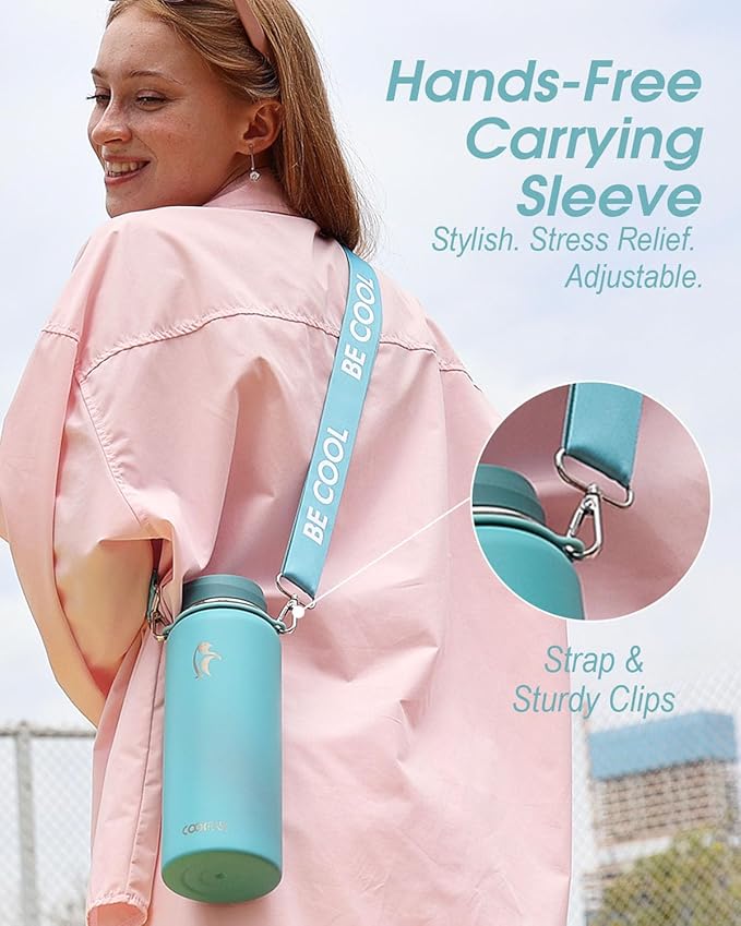 - Unleash Your Style, Hands-Free: Elevate your fashion game with this 40 oz water bottle's exquisite adjustable shoulder straps and eye-catching design. Whether worn crossbody, single-shoulder, or hand-held, it's a statement piece that complements your vibrant personality.