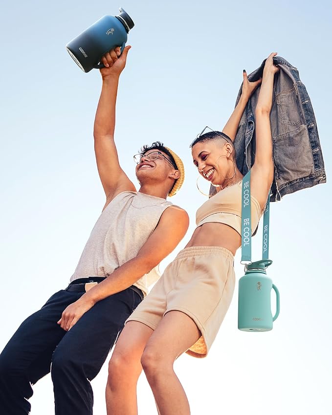 - Unleash Your Style, Hands-Free: Elevate your fashion game with this half gallon water bottle's exquisite adjustable shoulder straps and eye-catching design. Whether worn crossbody, single-shoulder, or hand-held, it's a statement piece that complements your vibrant personality.
