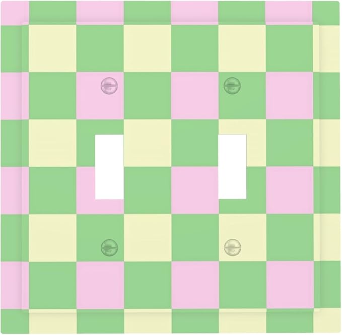 Checkered Gingham Double Toggle Light Switch Covers 2 Gang Wall Plate Dual Decorative Switchplate Electrical Faceplate for Bathroom Country Kitchen Bedroom Decor, 4.9" x 5"