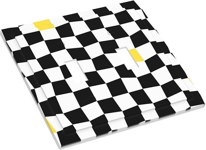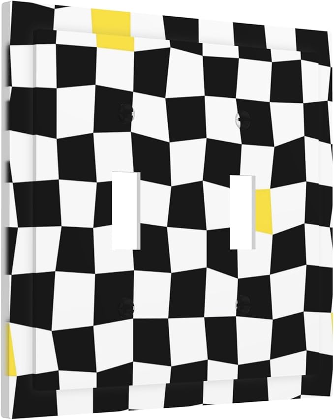 Black and White Distorted Squares Double Toggle Light Switch Covers 2 Gang Wall Plate Dual Decorative Switchplate Electrical Faceplate for Bathroom Country Kitchen Bedroom Decor, 4.9" x 5"