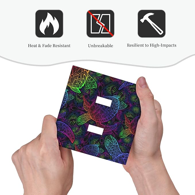 Multicolor Colors Sea Turtle Double Toggle Light Switch Covers 2 Gang Wall Plate Dual Decorative Switchplate Electrical Faceplate for Bathroom Country Kitchen Bedroom Decor, 4.9" x 5"