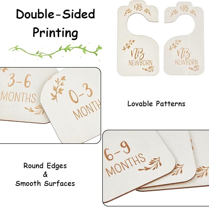 - 8Pcs Baby Closet Dividers: You will receive 8pcs wooden baby closet dividers, including newborn, 0-3 months, 3-6 months, 6-9 months, 9-12 months, 12-18 months, 18-24 months and toddler, will help sort out your baby's clothes.