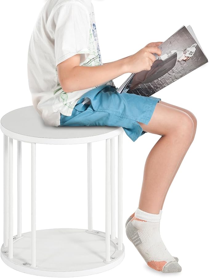 - Unique Design: This small step stool adopts a cylindrical design concept, with 8 steel pipes supporting the upper and lower sides, which is not only sturdy and beautiful, but also very fashionable. This rustic step stool matches any house decorations with a retro appearance.
