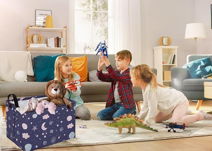 - 【Multi-Application Home Essentials】The moon deep blue laundry basket that carries not only used bathroom towels, laundry,bed sheet, boys and girls sports underwear ,shoes,but also easily organizers for toys,stuffed animals,books,yoga mats ,etc.They’re spacious enough to storage your stuffs neatly inside