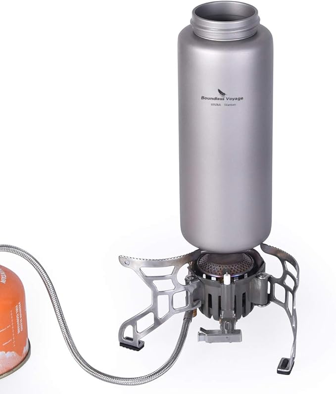 iBasingo 1050ml Titanium Bottle 600ml Nesting Cup Outdoor Camping Single Layer Wide Mouth Cookware Lightweight Portable Bottle Mug Hiking Picnic Solo Cooking Mess Kit