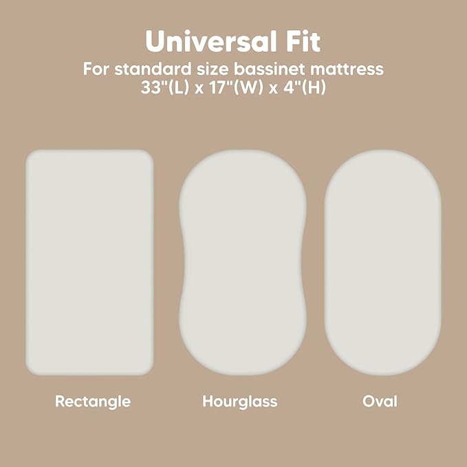 - 2-Pack Bassinet Fitted Sheets - KeaBabies Soothe Bassinet Mattress Sheets, sized at 33" x 17" with a depth of up to 4", provide a universal fit for all bassinet mattress pad types. They can be used as hourglass, oval, rectangle bassinet sheets.