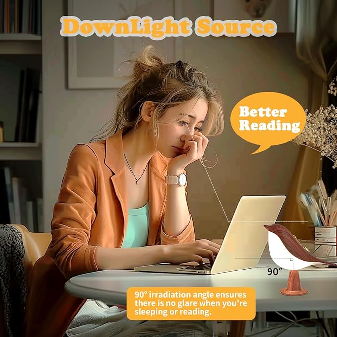 - 【3 Color Temperatures & Adjustable Brightness】Our bird lamp features wireless design and touch dimming system. Tap the top of this table lamp can switch color temperatures and adjust three levels of brightness in white, neutral, and warm tones. SHORT PRESS to change color and LONG PRESS to change intensity.