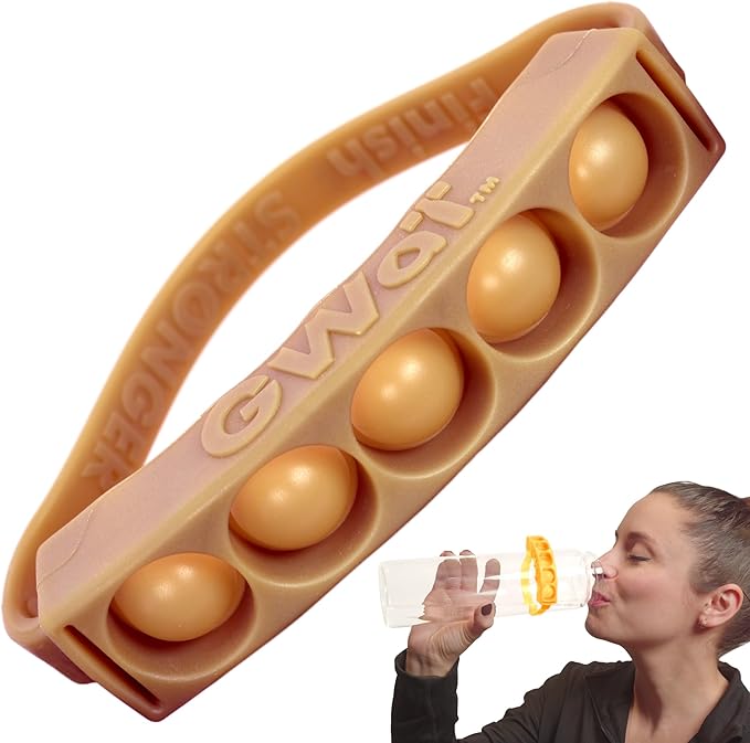 - FUN DESIGN: Fits your favorite water bottles, with fun poppers to pop your way to your hydration goal. Has the words “Start STRONG” embossed on one side of the band, and “Finish STRONGER” on the reverse side to keep you motivated.
