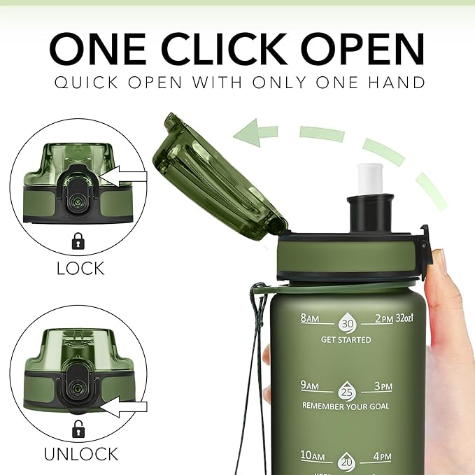 - Motivational Quote and Time Marker: 32 oz water bottle with inspirational quote and time marker on it, reminding you to stay hydrated. And helps you reach daily health and fitness goals.